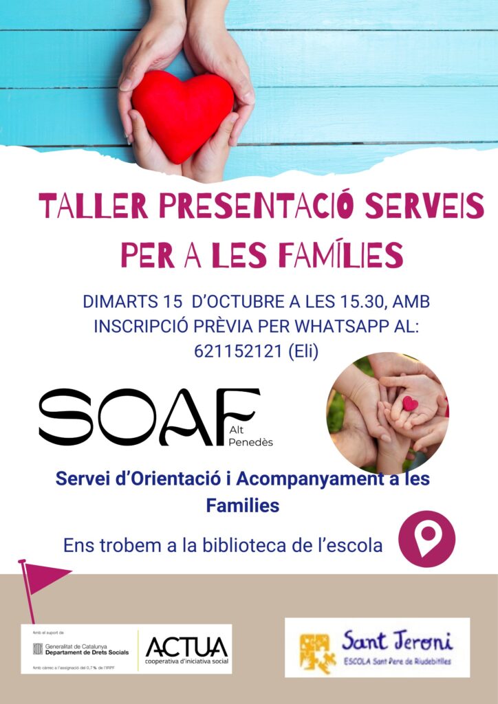 Taller de presentació dels serveis SOAF a les famílies. Dimarts 15 d’octubre de 2024