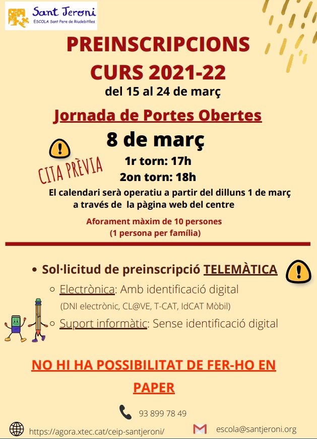 Aquest any, degut a les mesures restrictives del covid-19, es podran organitzar de manera presencial sense superar l’aforament de 10 persones màxim. Per aquest motiu hem creat un calendari de reserva de cita per tal que les famílies (1 persona per família) es puguin apuntar a una de les dues franges horàries que s’ofereixen.