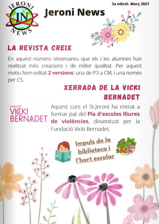 Ja ha arribat la primavera i l’escola publica la revista del 2on trimestre. Amb tanta alegria els alumnes s’han animat i han creat més articles, notícies… i per aquest motiu hem elaborat dues revistes: una de P3 a Cicle Mitjà i una només per Cicle Superior.