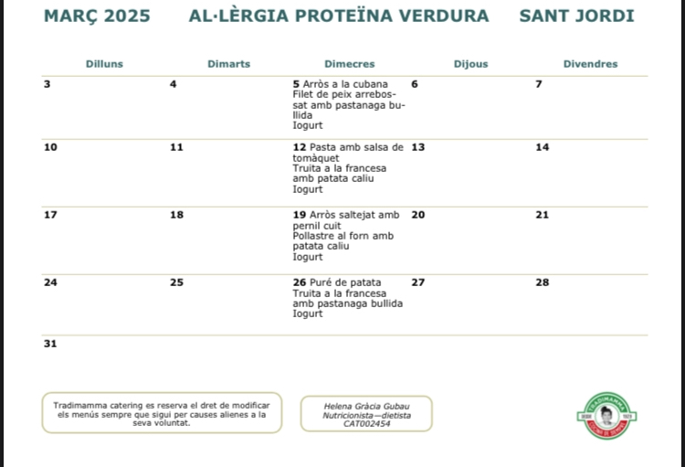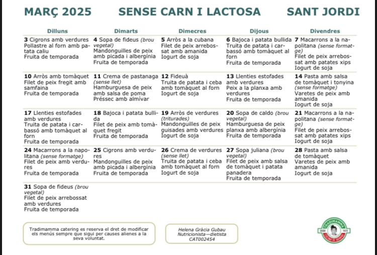 Menjador escolar. Menús del mes de març Feu un comentari / Per Direcció / 5 de març de 2025 / General Menjador escolar Portada Us compartim els menús del mes de març.