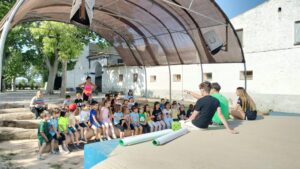 Avui ha estat un dia ple d’il.lusió i descobertes a la granja. Els nens i nenes han arribat amb un somriure que ho deia tot: començava una petita gran aventura! El sol ens ha acompanyat durant tot el dia. En arribar hem esmorzat i tot seguit hem fet un joc de descoberta de la granja. Abans d’anar a dinar hem pogut preparar els dormitoris, amb els llits i els sacs de dormir a punt per la nit. A les 13h ens esperava un dinar d’allò més bo. Ara sí, amb les piles ben carregades hem fet els tallers de tarda: hem fet taller de cuina (flams i iogurts), hem conegut els animals, els hem pogut tocar amb cura i respecte veient com la curiositat dels més petits converteix cada descoberta en un instant màgic. Entre jocs, passejades i noves experiències s’han creat bonics records per tots i totes.