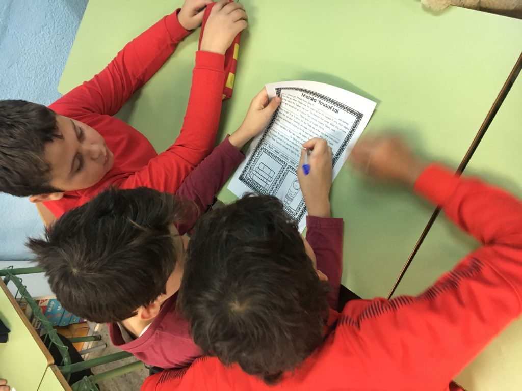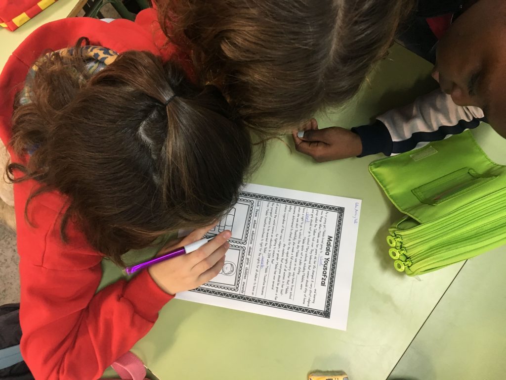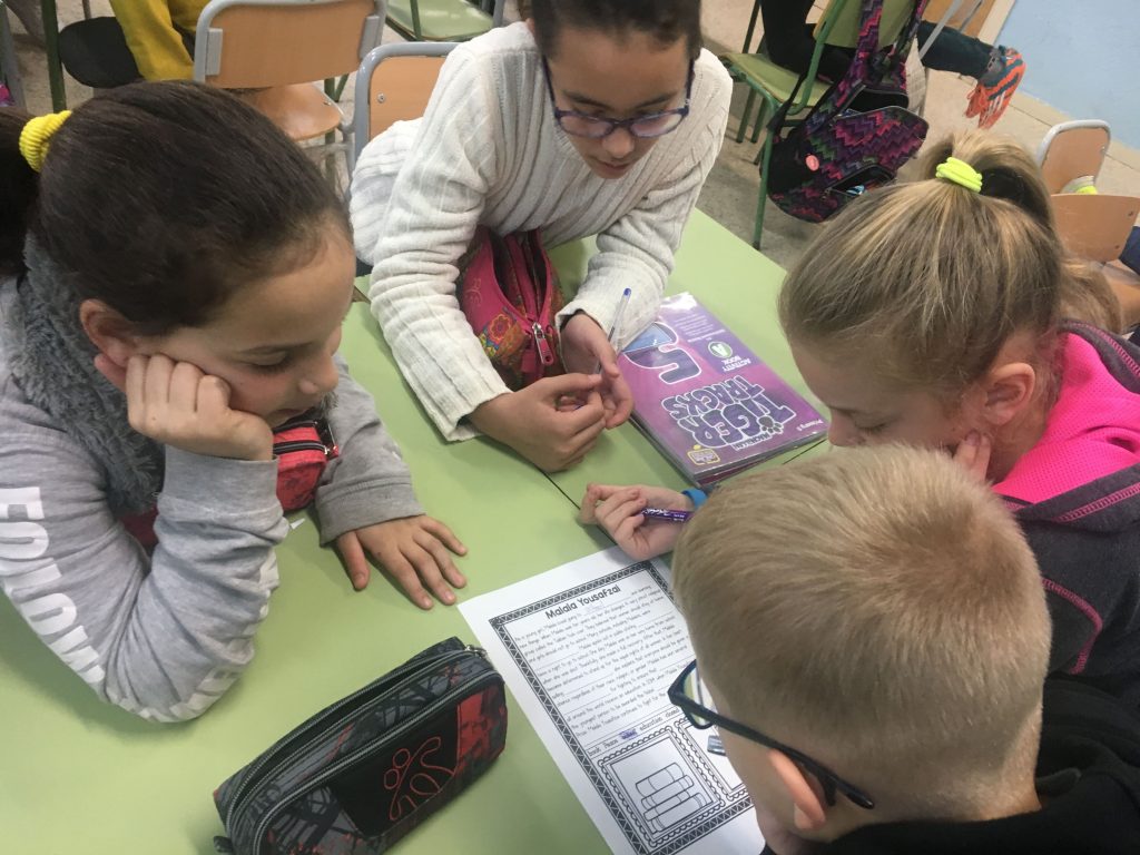 Aquest any a 4rt i Cicle Superior hem treballat la Malala Yousafzai els dies previs i durant el dia de la Pau des de l’àrea d’Anglès. Els tres cursos han vist un vídeo molt interessant i després hem fet diferents activitats. Aquí podeu veure tant el vídeo que hem vist com algunes fotos de treball cooperatiu dels dos cursos de 5è.