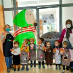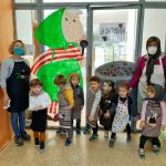 Hem anat a veure la castanyera, li hem ensenyat la nostra castanya divertida i els nostres davantals i mocadors.