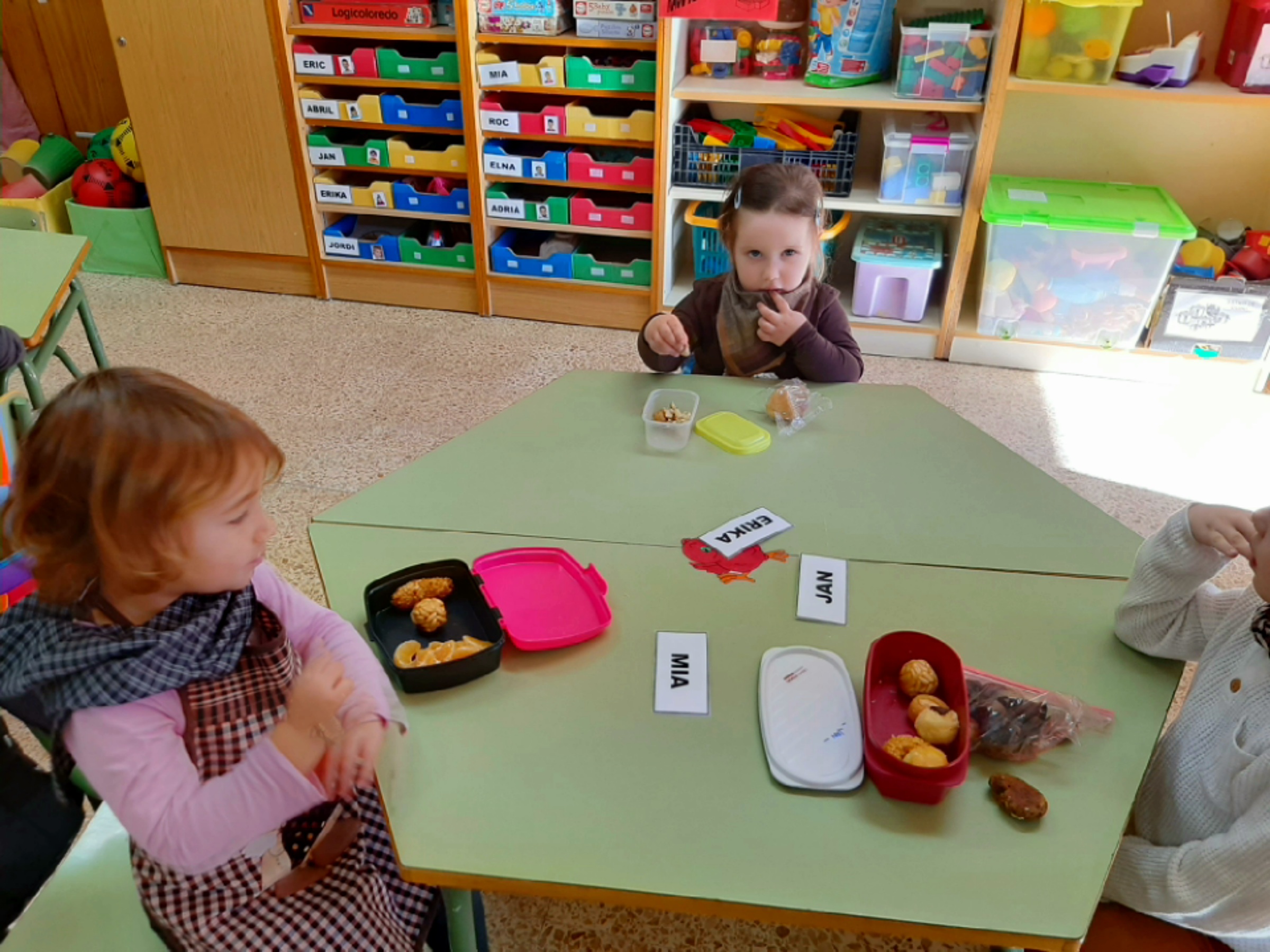 A la classe hem ballat el ball de la castanyera i hem esmorzats castanyes i panellets.😋