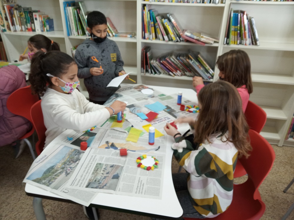 Avui hem començat a preparar la decoració de la biblioteca, tot i recreant un ambient d’hivern i nadalenc. Un grup d’alumnes de 5è han estat organitzant el tipus de decoració i el material necessari per dur-la a terme. Des d’avui, les nenes i els nens que ho vulguin, podran venir, a l’estona de l’esbarjo, a la biblioteca i participar en aquesta decoració. La participació per part de l’alumnat ha estat un èxit!!! Aquí teniu una mostra de l’ambient que hi havia a la biblioteca.