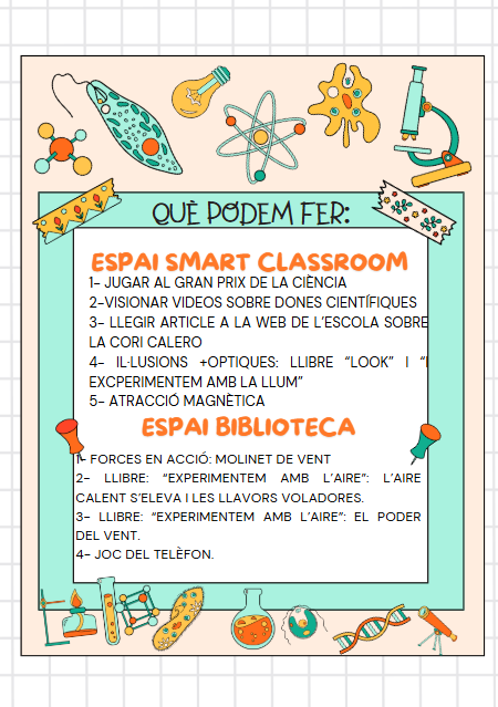 La setmana vinent, del 17 al 21 de febrer, celebrem la Setmana de la ciència a l’escola. La biblioteca també hi vol fer la seva aportació; és per això que durant tota la setmana, l’alumnat de Primària, podrà venir a la biblioteca per convertir-se en científics i científiques, tot experimentant amb diferents propostes que se’ls oferiran.
