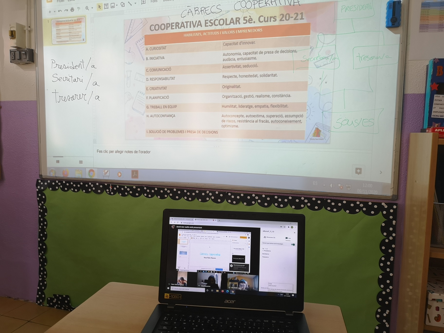 Durant aquests dies també hem analitzat les habilitats, les actituds i els valors emprenedors, per tal de reflexionar-hi i així saber quines habilitats tenim cadascun de nosaltres per aportar a la cooperativa o quines d’elles ens proposem com a repte per anar millorant. Aquest treball d’anàlisi i reflexió individual i conjunta ens servirà per a presentar-nos per als càrrecs de la cooperativa (dos directors/es, dos secretaris/es i dos tresorers/es) i els diferents departaments per a tirar endavant la nostra cooperativa!