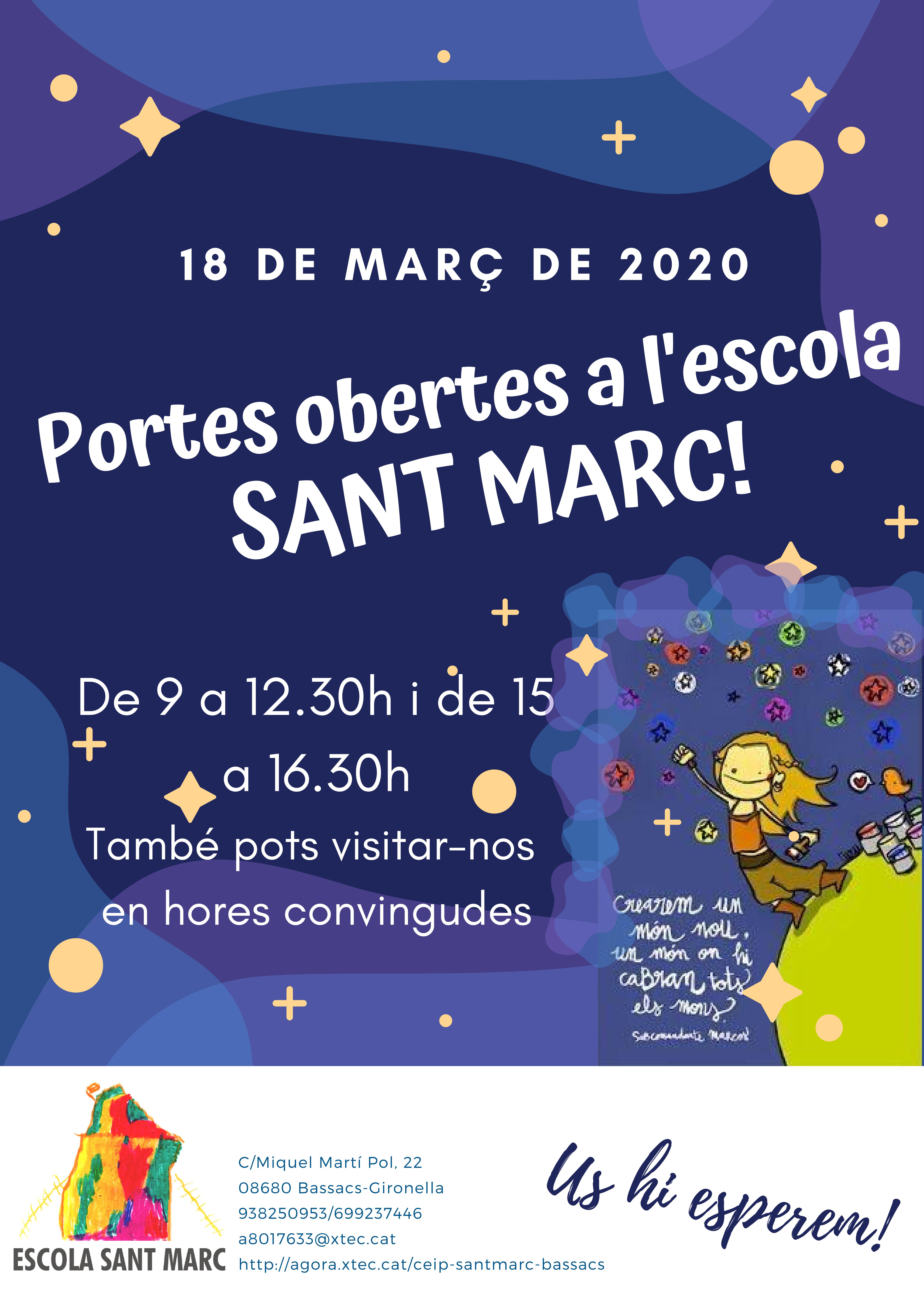 Us convidem a la Jornada de “Portes obertes”, a l’escola en funcionament, que tindrà lloc el proper 18 de març, de 9 a 12.30 i de 15 a 16.30 h.