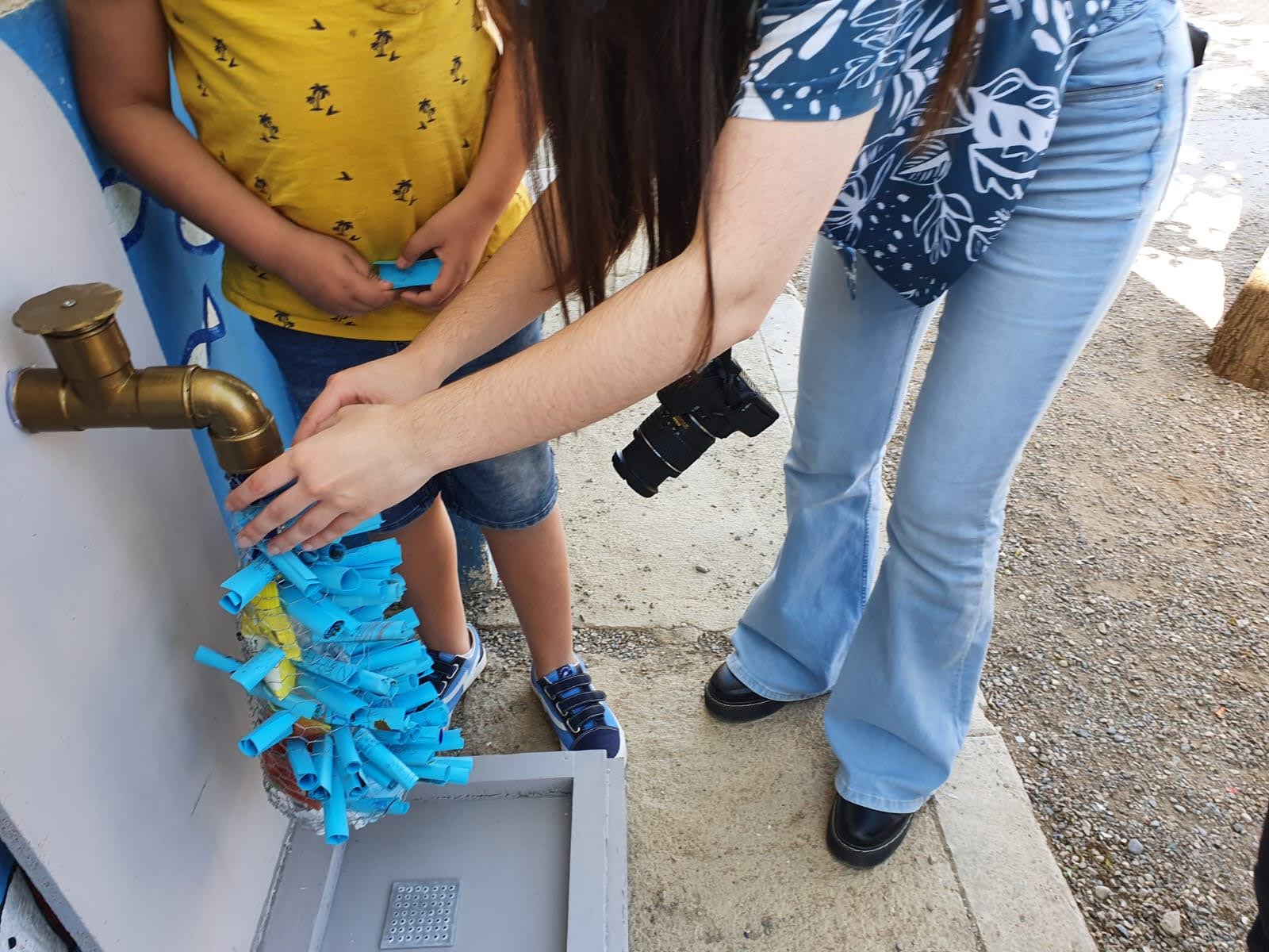 Aquesta setmana la Carolina, una estudiant d’Arts, ens ha visitat per proposar-nos un projecte molt interessant, “Font d’eco idees”. Dijous vam sortir pels voltants de l’escola a recollir la brossa escampada pel terra. I en vam recollir molta!!! Divendres a la tarda la Carolina va portar la font, feta per ella, representava l’aigua bruta amb les diferents deixalles, plàstics i papers que vam recollir dijous. Simbòlicament vam deixar missatges que ens recorden que la Terra s’ha d’ESTIMAR I RESPECTAR.