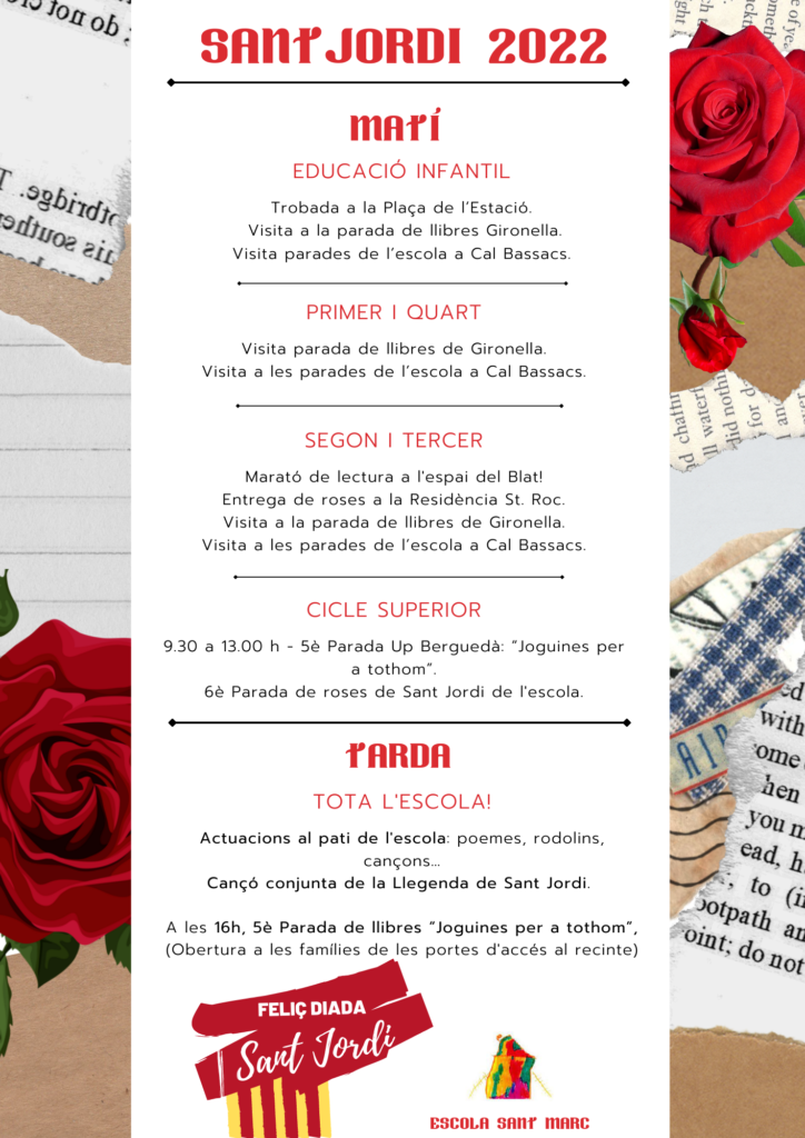 SANT JORDI: CARTELL I IMATGES Rocío Fernández Campos21/04/22 Us compartim el cartell de Sant Jordi i les imatges d’aquest dia al següent àlbum. Bona diada!