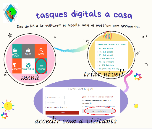 Accedir al moodle de manera ràpida i fàcil. En aquesta infografia trobareu la manera per accedir al moodle i poder fer les tasques digitals del vostre nivell a casa. RECORDEU entrar al curs del vostre nivell com a “convidats”. Podeu veure la infografia clicant a la imatge.