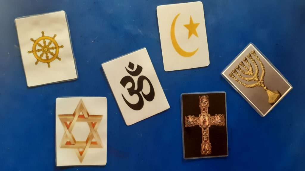 A Cicle Inicial hem introduït l’existència de les diferents religions a través dels símbols, després les cartes ens han ajudat a classificar, aparellar, agrupar, anomenar i, el més important, a fer-nos adonar que el món és molt gran amb persones que pensen, celebren, vesteixen, resen i demanen desitjos molt diferents.