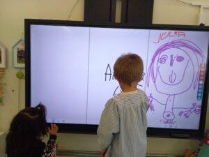 Ja fa uns mesos que a l’aula tenim els panells interactius i aquesta setmana hem estat practicant el nostre nom i també la figura humana.