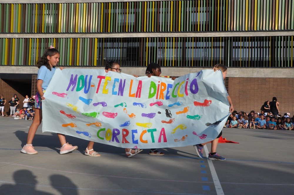 Aquest curs la nostra festa de fi de curs està ambientada en el lema “Salvem el planeta” el qual hem anat treballant al llarg del curs. Han encetat la festa la nostra faràndula de l’escola: en Roc i en Cuc i seguidament també ens ha visitat la vaca Simforosa i els vedellets del barri de