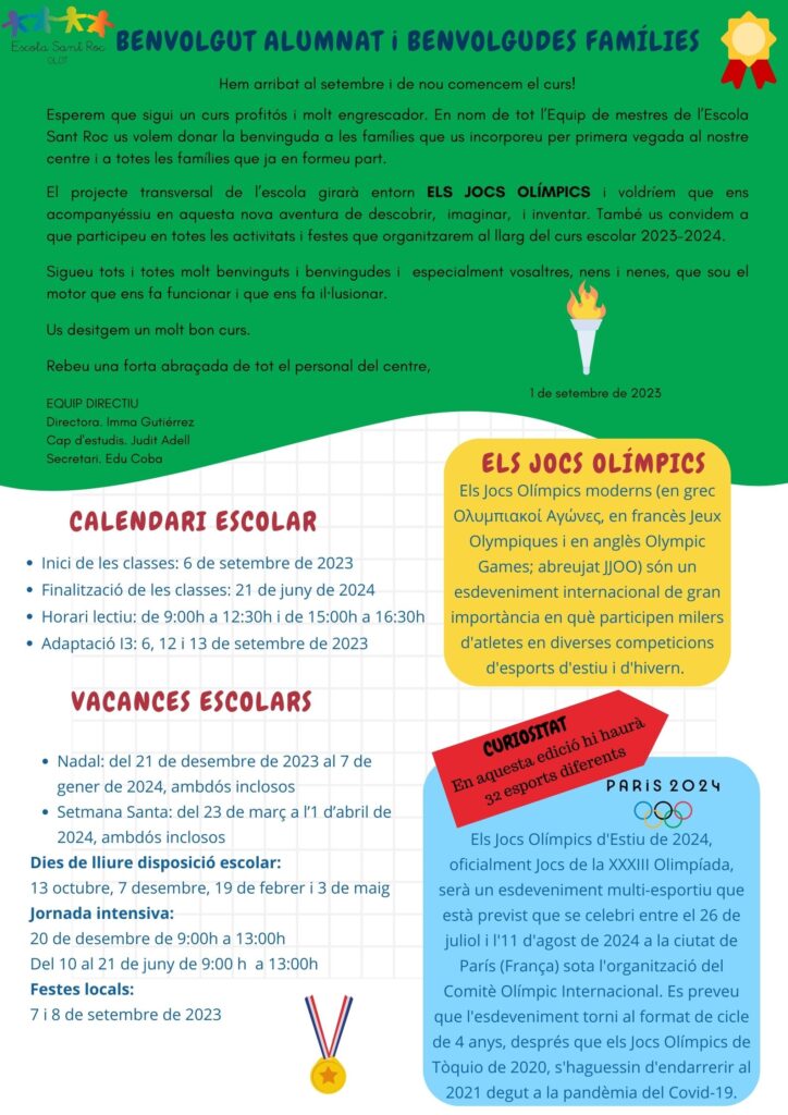 BENVINGUTS/DES AL NOU CURS! Feu un comentari / Per Escola Sant Roc / 1 de setembre de 2023 / CURS 25-26