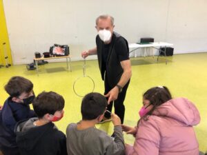 Students from 1st, 2nd and  6th grade were amazed with the show. These are some of the tricks we watched : the three ropes , sticks, cups and balls, rings, cut the paper, wallet and paper and many more.