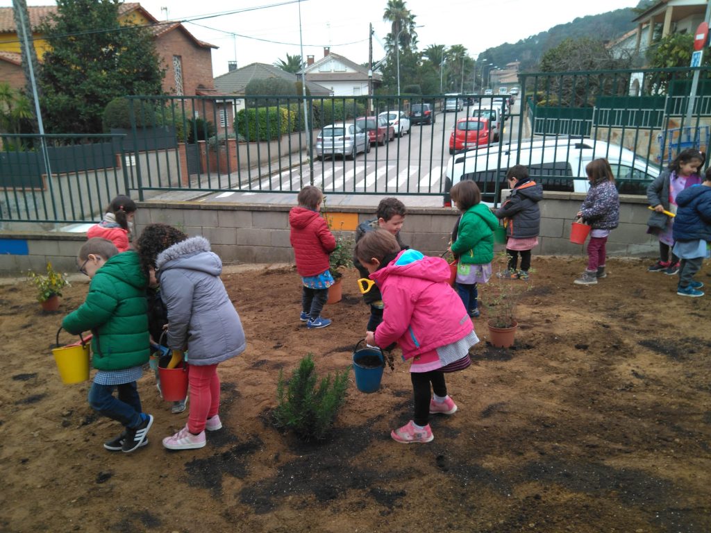 Les famílies, els nens i nenes i els mestres han fet una plantada de plantes aromàtiques i culinàries als patis d’educació infantil i primària.