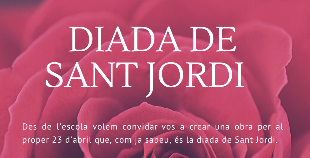 Us animem a que sigueu creatius i participeu a la MOSTRA DE TREBALLS DE SANT JORDI de l’escola. Dibuixar, pintar, retallar, escriure, decorar, representar… hi ha un munt de possibilitats per gaudir i preparar l’arribada d’aquesta data tan assenyalada. Voldràs participar-hi?