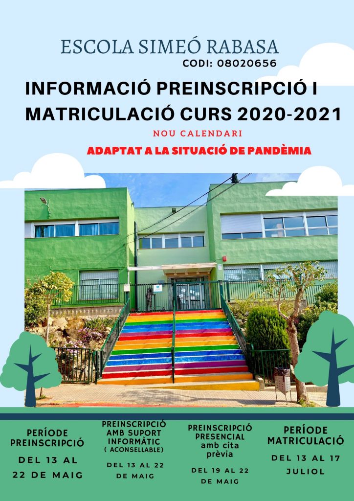 PREINSCRIPCIÓ- OFERTA PLACES I MATRICULACIÓ DEL CURS 2020-2021 Llegeix més »