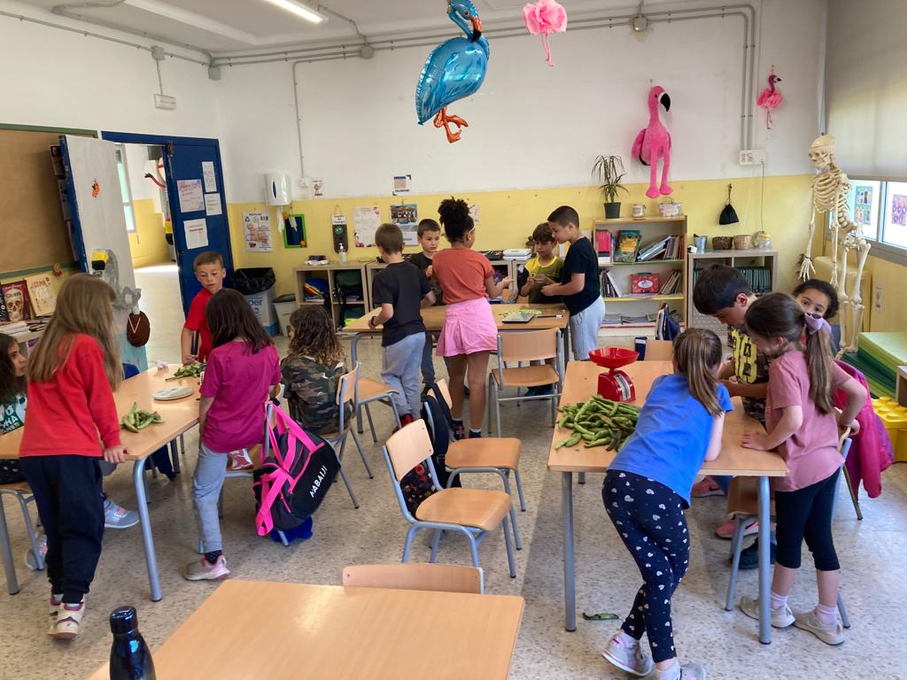 L’alumnat de segon ja ha fet la collita de les faves de l’hort. Abans de fer-ne un tastet, hem aprofitat per portar-les a la classe
