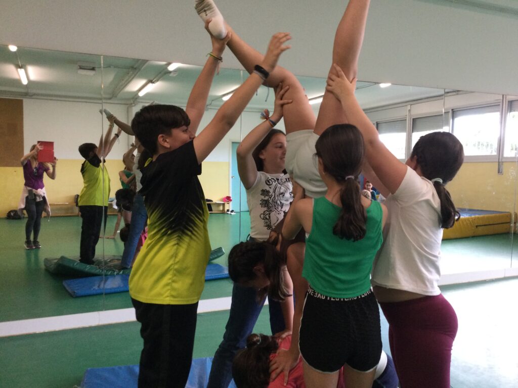 L’Acrosport és una activitat molt engrescadora pels nens/es a primària. És una disciplina que combina exercicis acrobàtics amb coreografia. A cinquè és un bon moment per realitzar aquesta activitat. Aquest curs hem enfocat aquesta tasca amb l’objectiu de fer una feina conjunta per assolir un objectiu comú que mostraran a la resta de companys/es. Els nens/es no solament han de posar-se d’acord per realitzar un treball cooperatiu sinó que també han de seleccionar una música, una presentació i un comiat per la seva coreografia. Les sessions prèvies a muntar la coreografia de grup passa per conèixer diferents figures acrobàtiques i posar-les en pràctica, així com tombarelles, verticals o rodes començant des de la base i amb ajuda. És un esport molt complert que ajuda a agafar confiança a l’alumnat alhora que els fa gaudir i prendre decisions de grup.