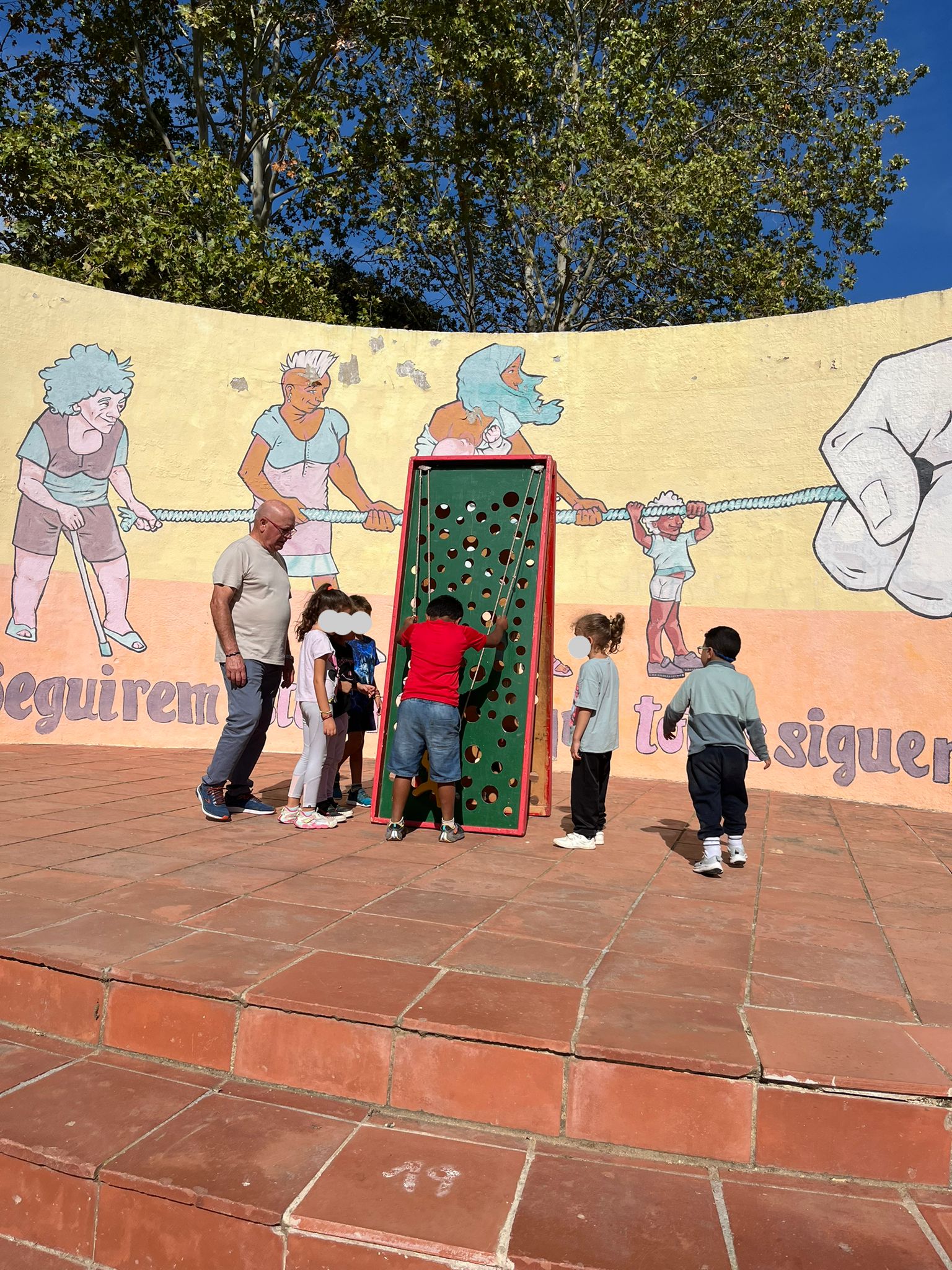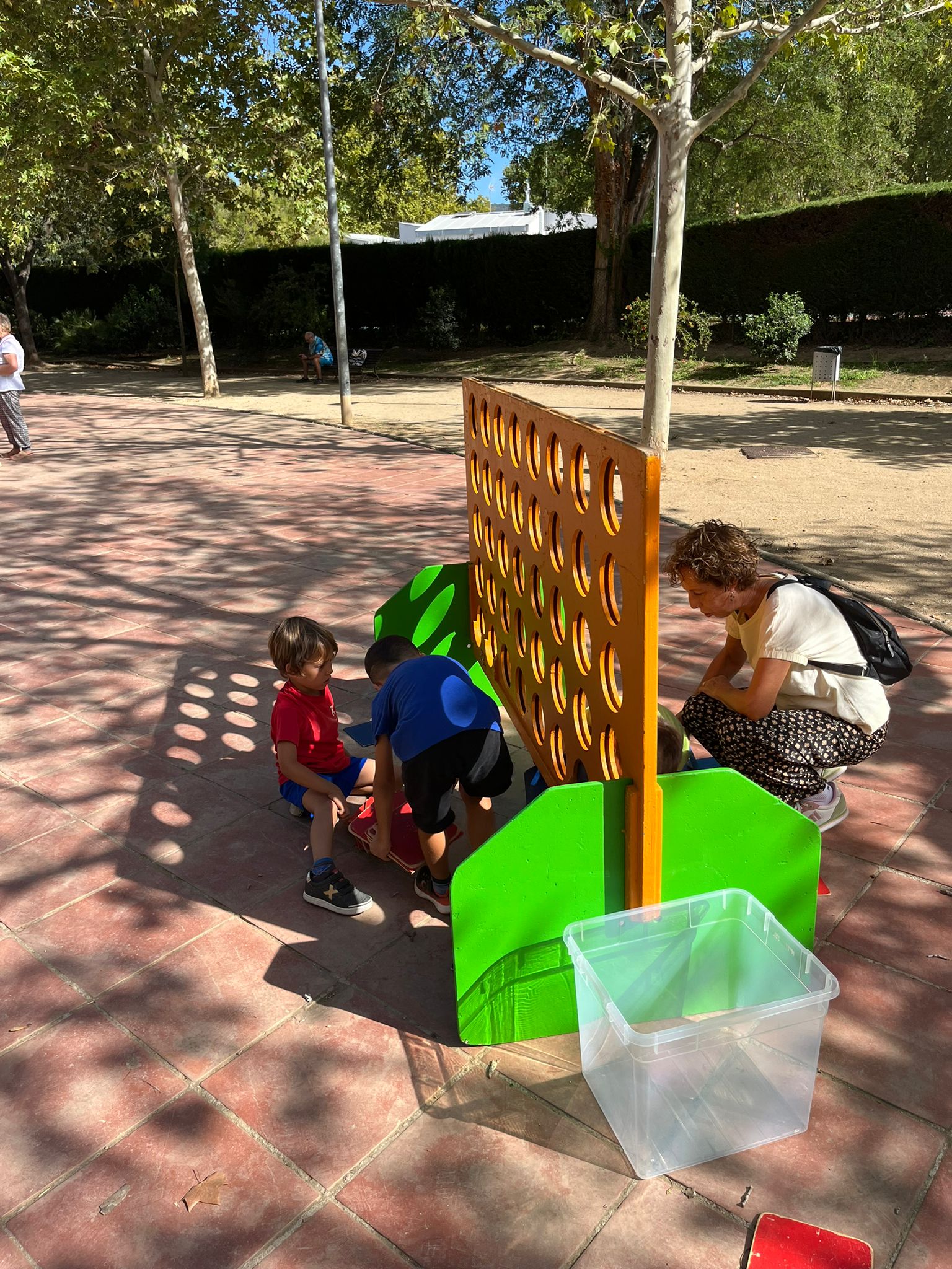 A la plaça ens esperaven els avis i àvies dels infants que també hi estaven convidats i junts vam gaudir d’una tarda molt especial, on vam compartir converses, riures i estones de joc, amb els jocs de fusta gegants que hi havia preparat a la plaça.