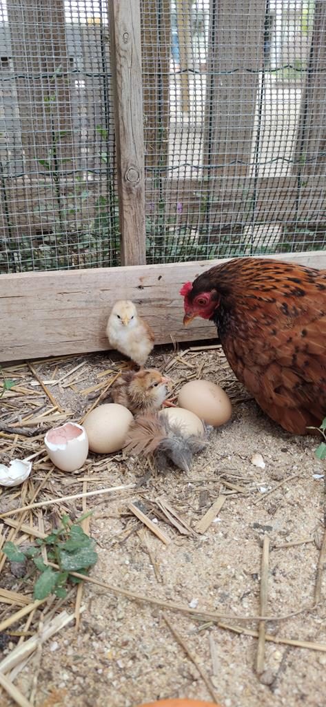 Fa uns dies que la Cocó, la nostra gallina més jove, va començar a covar dins de la ponedora. Els primers dies no estava gaire quieta i ens pensàvem que potser no passaria res. Després, vam veure que estava més tranquil·la i no es bellugava tant, només per menjar i beure aigua.