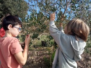 Per collir vam fer grups per poder-nos repartir per a collir cada olivera.