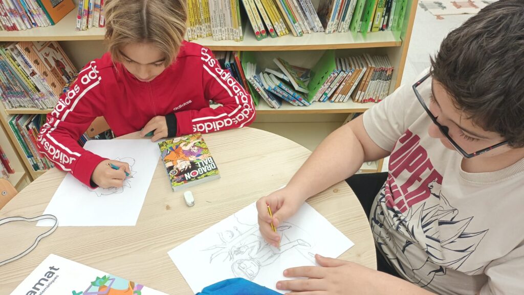 Els nens i nenes de l’escola disposen d’un nou servei a la biblioteca. Els dimecres, a l’hora del pati, si no ens ve de gust estar a fora, poden anar a la biblioteca a llegir, canviar llibres, dibuixar, fer jocs de taula gegants… fins i tot compartir l’estona amb altres infants de l’escola que fan altres cursos. Ens agrada molt perquè ens relaxem fent activitats que ens agraden.