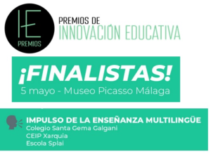 Ha sel·leccionat el nostre projecte “Festivales en Multiverso” (Composat per l’Auca de Desembre, l’Auca de Sant Jordi i el Pregó de Carnestoltes en trilíngüe), com a un dels 3 Projectes finalistes a la categoria d’IMPULSO DE LA ENSEÑANZA MULTILINGÜE d’entre els més de 700 projectes presentats d’Espanya i Llatinoamèrica.