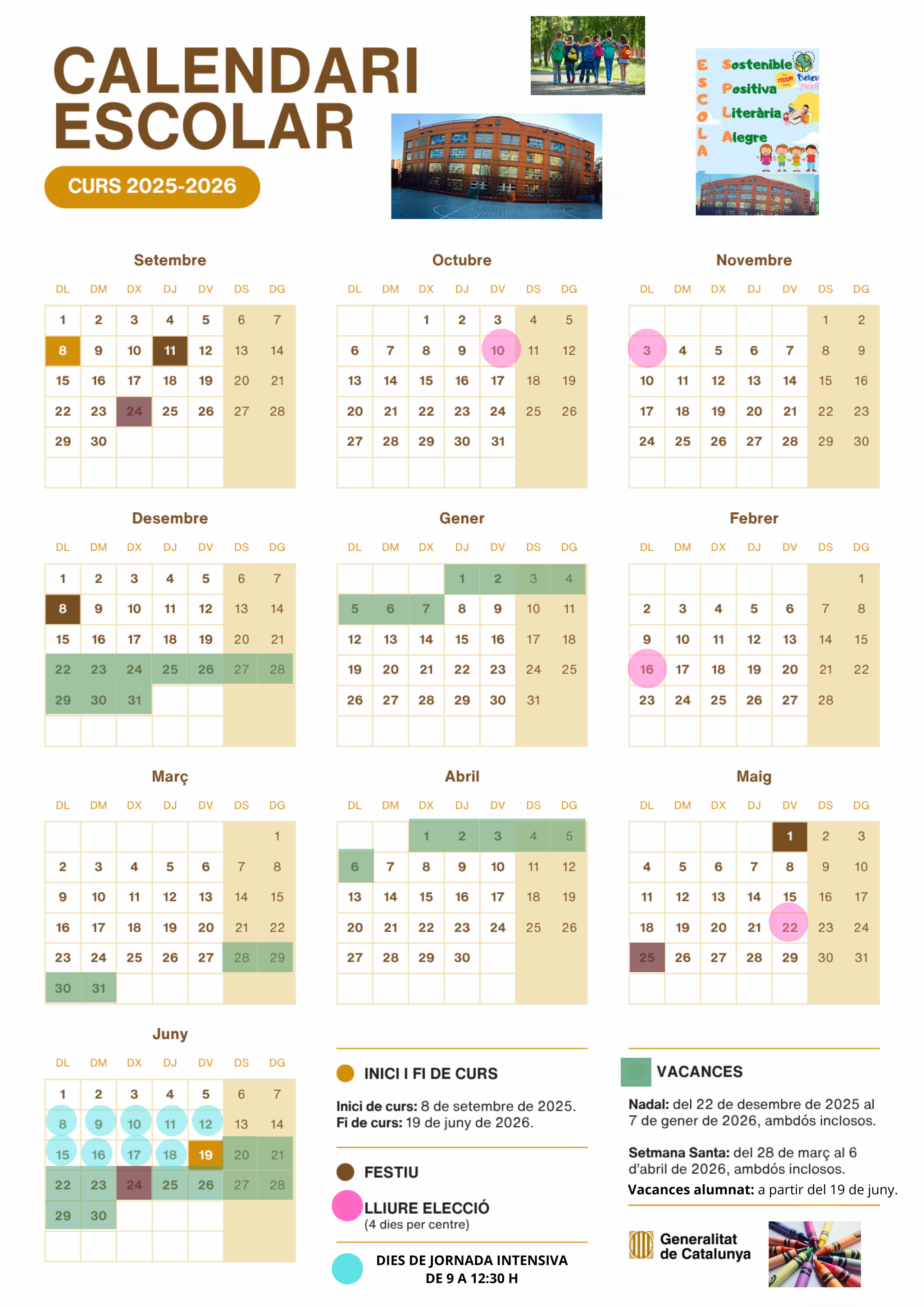 Compartim amb vosaltres aquests documents organitzatius a tenir en compte durant el Curs 2025-26.