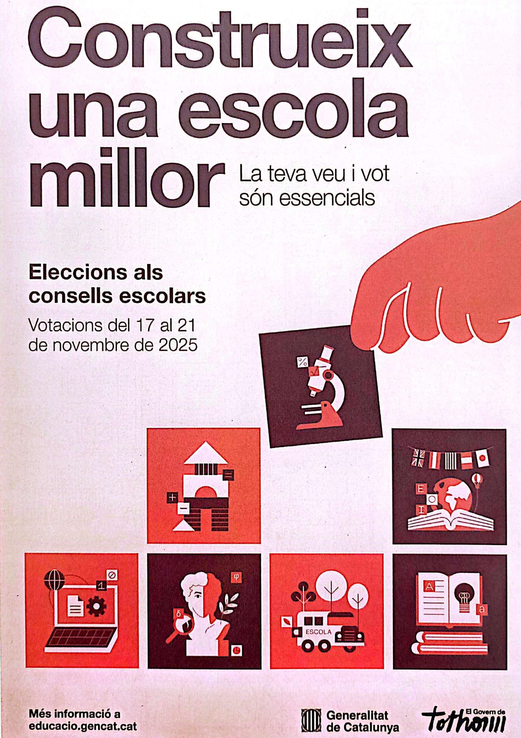 Un cop finalitzades les eleccions al Consell Escolar, les persones escollides per representar els diferents sectors són les següents: PAS i PAE FAMÍLIES MESTRES Bet Casanovas Ana Jiménez Elvira Cortés Raquel Mariscal Meritxell Albiac Marta Chicón
