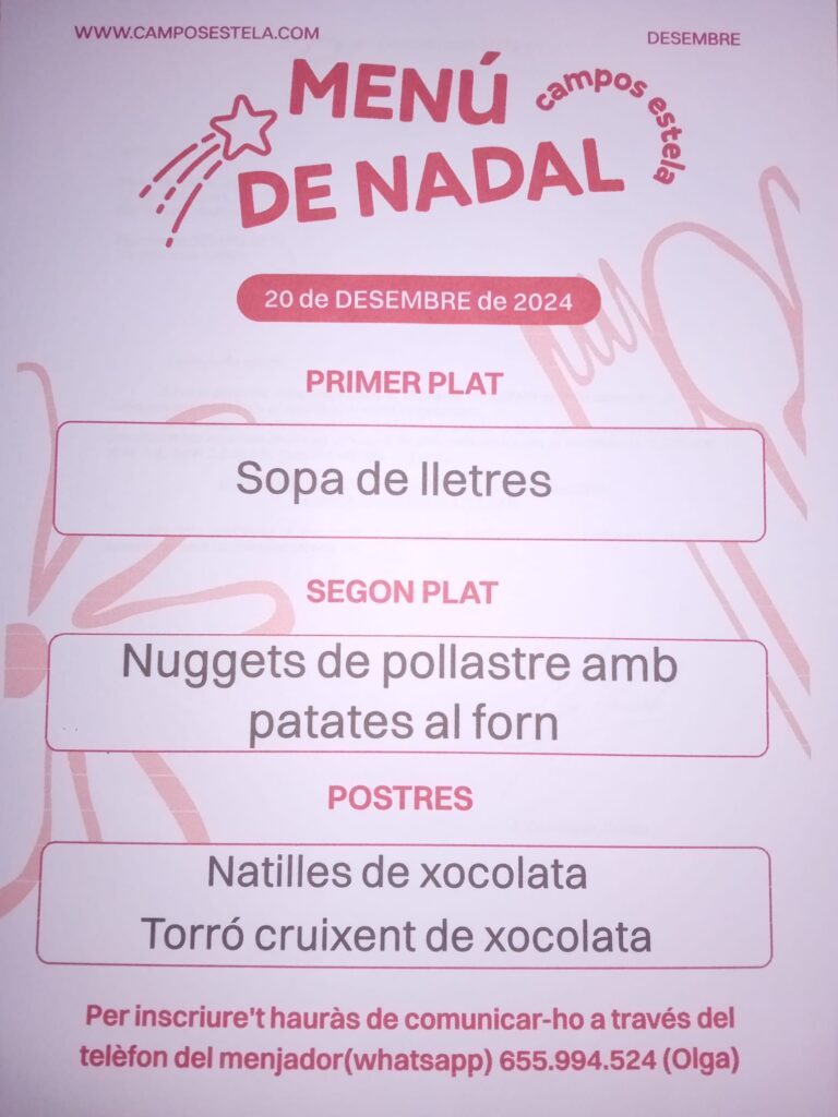 Aquest serà el menú del darrer dia de l’últim trimestre (divendres 20 de desembre). Ha estat triat per l’alumnat de 3r i 4t.