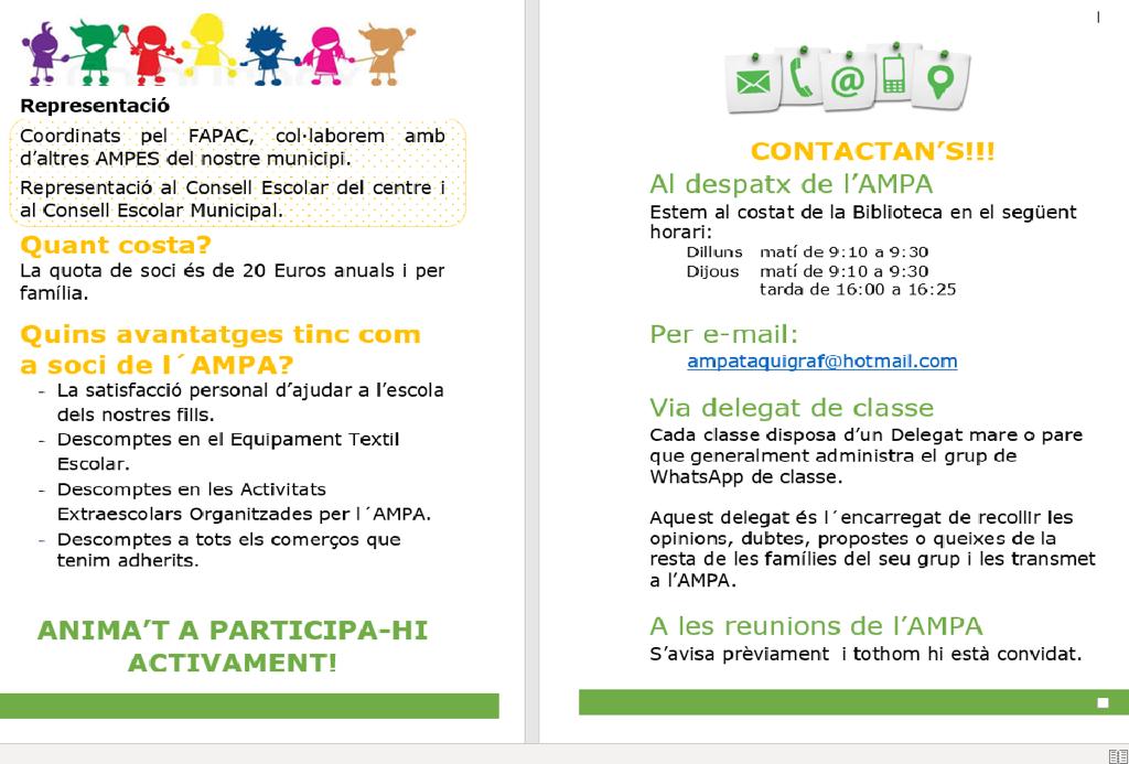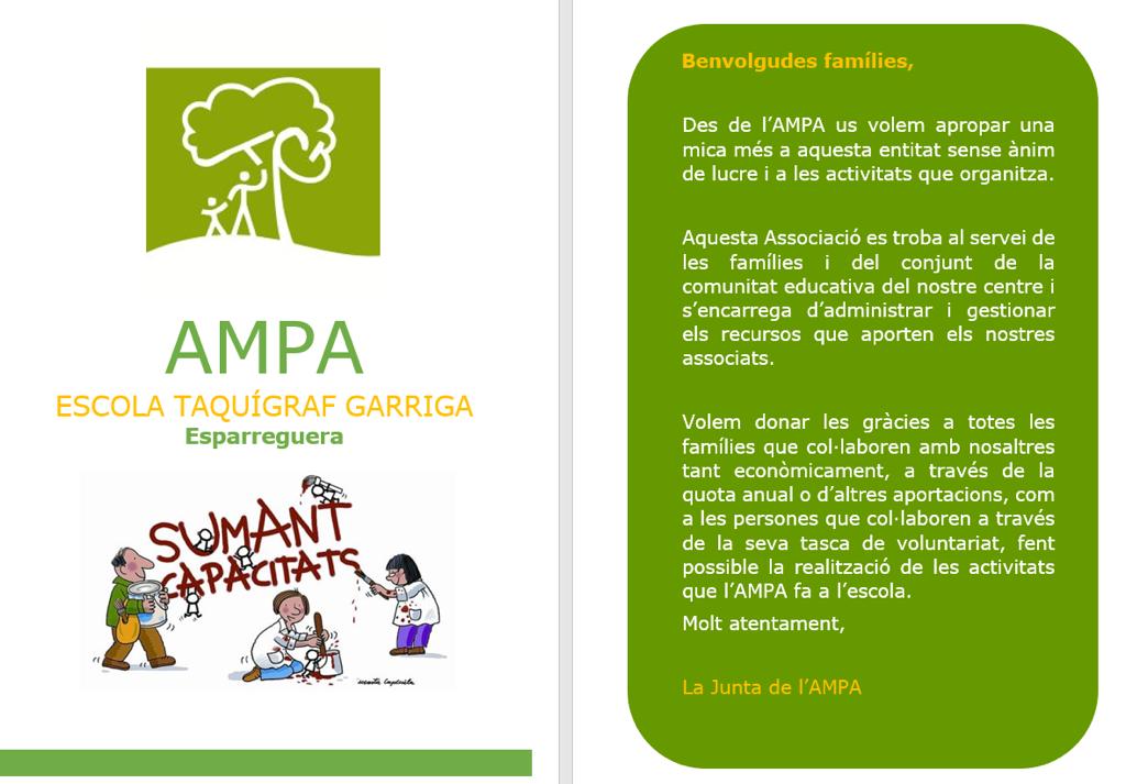 BENVINGUTS A L’AMPA Feu un comentari / Per admin / 14 de novembre de 2018 / AFA / AMPA, Benvinguts, famílies BENVINGUTS AL AMPA