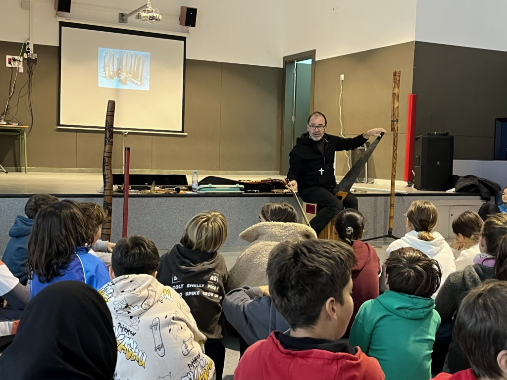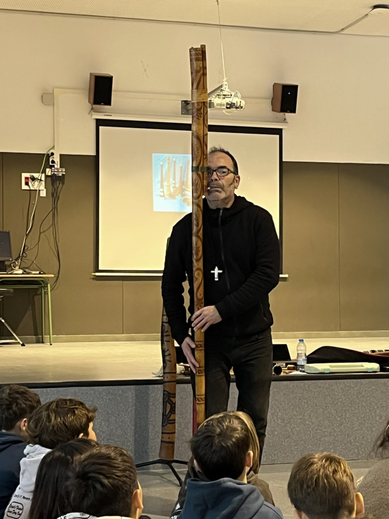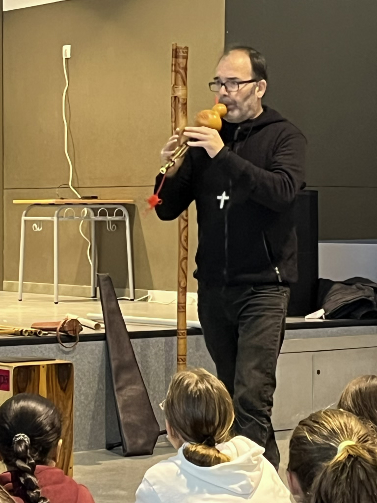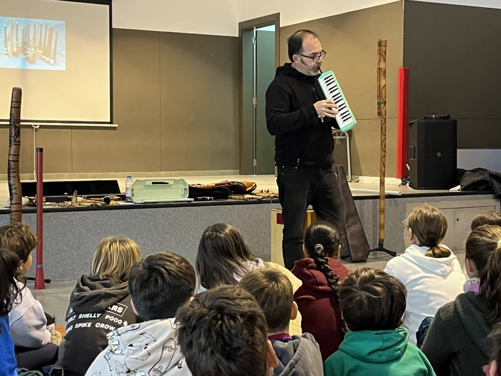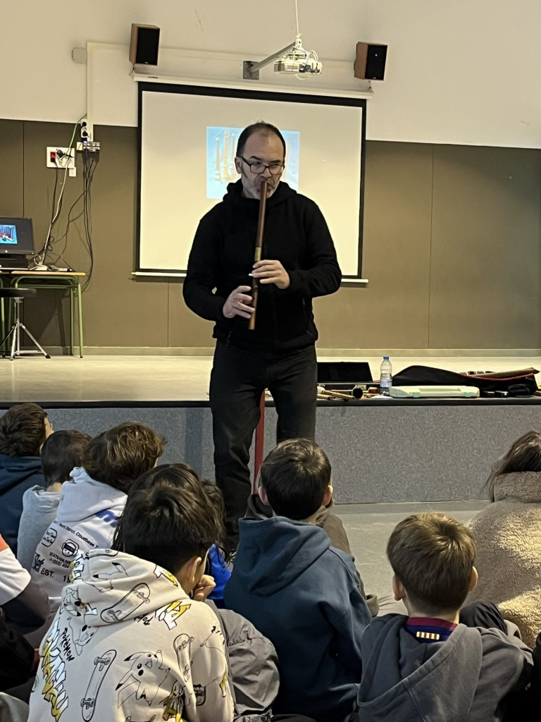 En aquesta audició/concert didàctic hem vist i sentit alguns dels instruments musicals més especials i característics de la família del vent de països llunyans. Ens han mostrat instruments dels diferents grups i de diferents països d’aquesta gran família: trompes, flautes de bec, flautes travesseres, flautes obliqües, instruments amb llengüeta, amb llengüeta doble i amb doble llengüeta, etc.