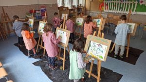 Al taller Artistes hem conegut els aspectes més interessants de la vida i l’obra de Joan miró, Frida Kahlo, Vincent van Gogh, Niki de Saint Phalle, Paul Klee i Grandma Mose. També hem experimentat amb la pintura, descobrint nous colors a partir de les nostres barreges i hem pogut fer les nostres obres d’art.