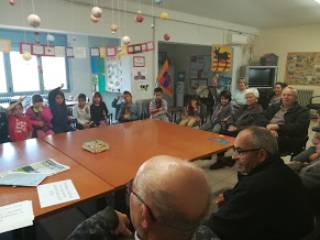 Nosaltres els hi hem recitat els poemes de l’ABECEDARI d’en Salvador Comelles, que ja ens havíem preparat per Sant Jordi. Els avis  ens han dit algunes endevinalles. Després improvisadament hem anat dient endevinalles entre   tots. Ha sigut una estona de convivència ben distesa i entretinguda.