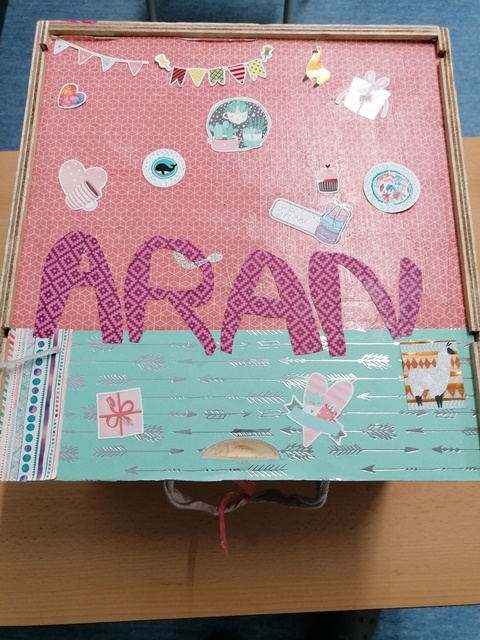 Avui a la classe verda ens hem estrenat amb les caixes dels tresors. La primera de fer-ho ha estat l’Aran Puig que ens ha ensenyat la seva caixa plena d’objectes i fotos molt especials. Ens ha parlat dels seus viatges, de la seva caravana, coses de quan va néixer, dels seus contes preferits, d’alguns dels seus ninos i ens ha explicat que li encanten els unicorns.