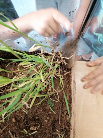 Avui la Laia Jiménez ens ha fet una sorpresa. Ens hem trobat al matí unes lletres barrejades i unes quantes pastanagues a la catifa que ens han despertat la curiositat. Entre tots hem descobert que les lletres ben ordenades ens sortia el nom del TALPÓ. A partir d’aquí hem estat parlant de què ens suggeria aquesta paraula i han sorgit diverses hipòtesis. Després del pati, la Laia ens ha portat un terrari on hi hem pogut observar un talpó que estava ben amagat sota terra. Hem conegut les característiques d’aquest animal i hem pogut comparar i trobar les diferències amb els talps.