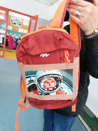 Aquesta setmana, la Valentina Tershkova ens ha portat una sorpresa! Dins una bossa hem descobert una disfressa amb un mono i una escafandre i de seguida hem descobert que es tractava de la roba que fan servir els astronautes. També portava un menjar molt estrany que hem pogut tastar i hem vist uns vídeos de com mengen i es renten les mans els astronautes!