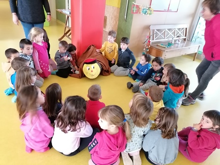 Ahir ens va arribar un missatge de veu molt especial, era un tió molt vellet que ens deia que havia enviat una tiona cap a l’escola d’Olost però que havia trobat totes les portes tancades i ens demanava si la podíem ajudar. Vam estar buscant pel pati, davant del gimnàs, per tot arreu i després d’una estona va aparèixer ben enfredorit darrere un banc. De seguida el vam portar al vestíbul, el vam abrigar amb una manta i li vam posar aigua i menjar.