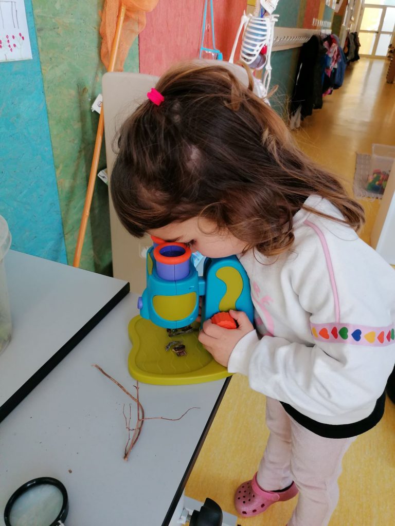 S’hi troben diferents micro-espais: espais de observació d’elements naturals(minerals, fòssils..)espai per recrear petits ecosistemes amb elements naturals(pedres, escorces, petxines,..), espai de experimentació i investigació,…