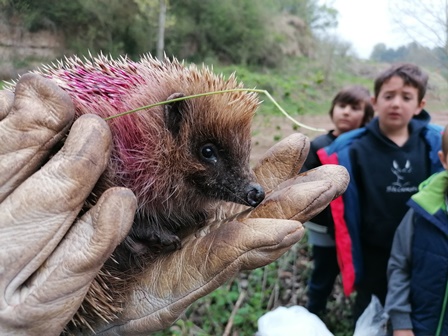 La mare del Roger i del Bernat ha col·locat uns eriçons en procés de reintroducció al bosc i avui els hi hem anat a portar menjar i a veure’ls. Són un mascle i una femella i els dos estaven força espantats tot i que un d’ells ens ha deixat veure les potes i la cara.