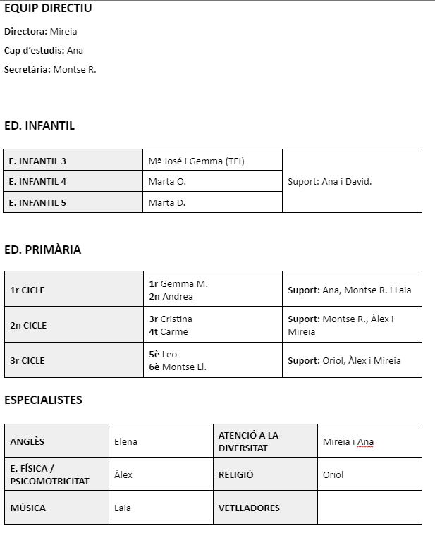 Pla anual de l’escola