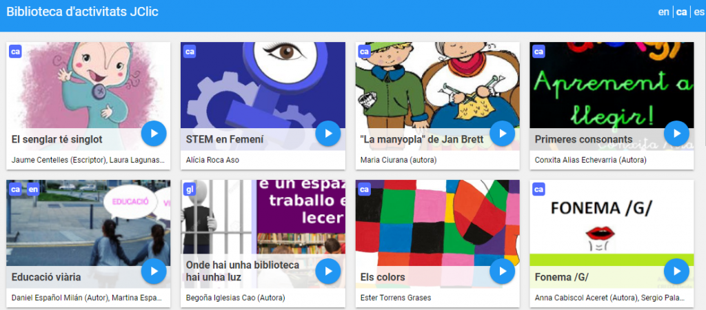 Web on podreu cercar activitats per nivell i assignatura (banda esquerre de la mostra que hi ha a la imatge del web). Després per accedir al joc seleccionat heu de clicar la bola blava amb el símbol del PLAY.