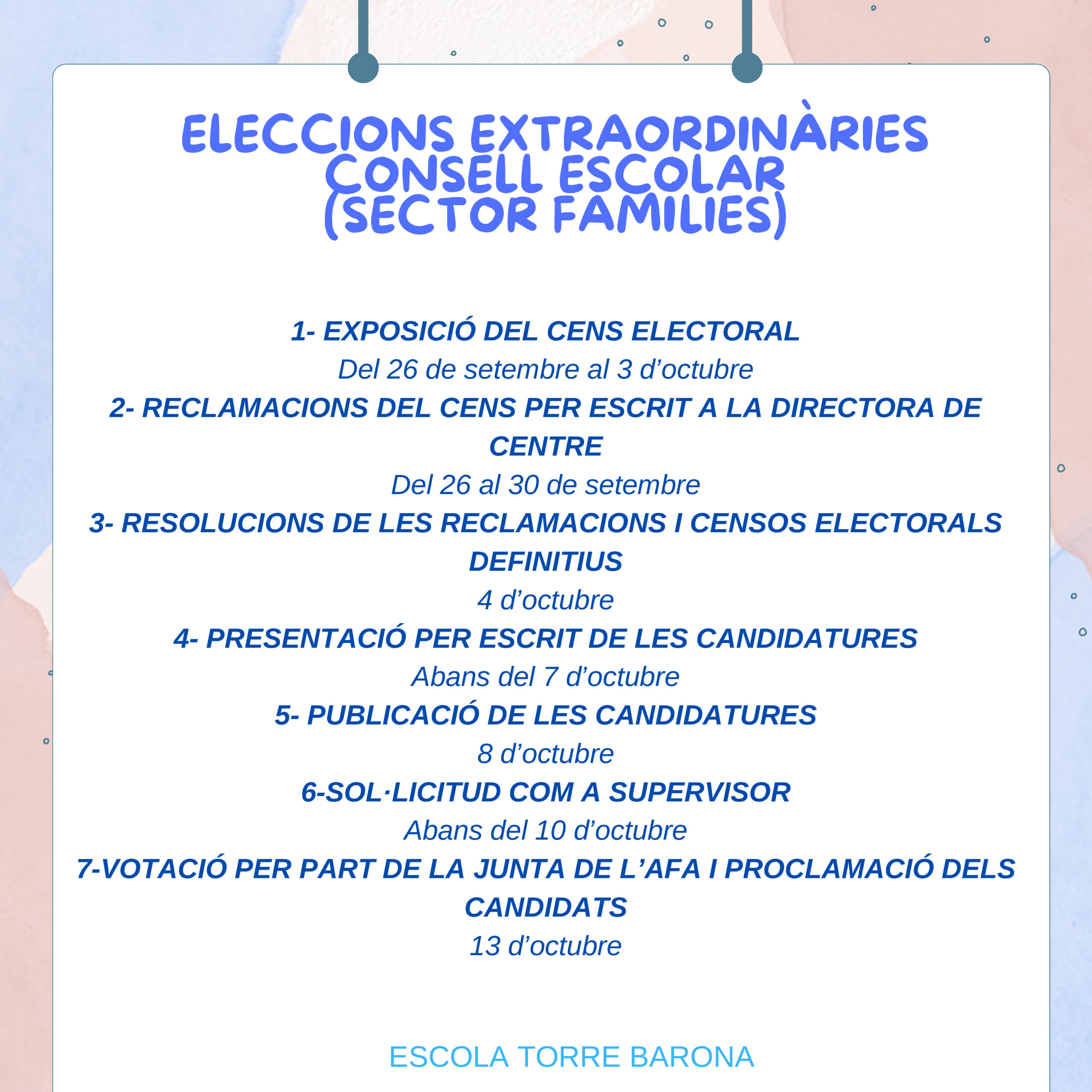 Eleccions extraordinàries Consell Escolar