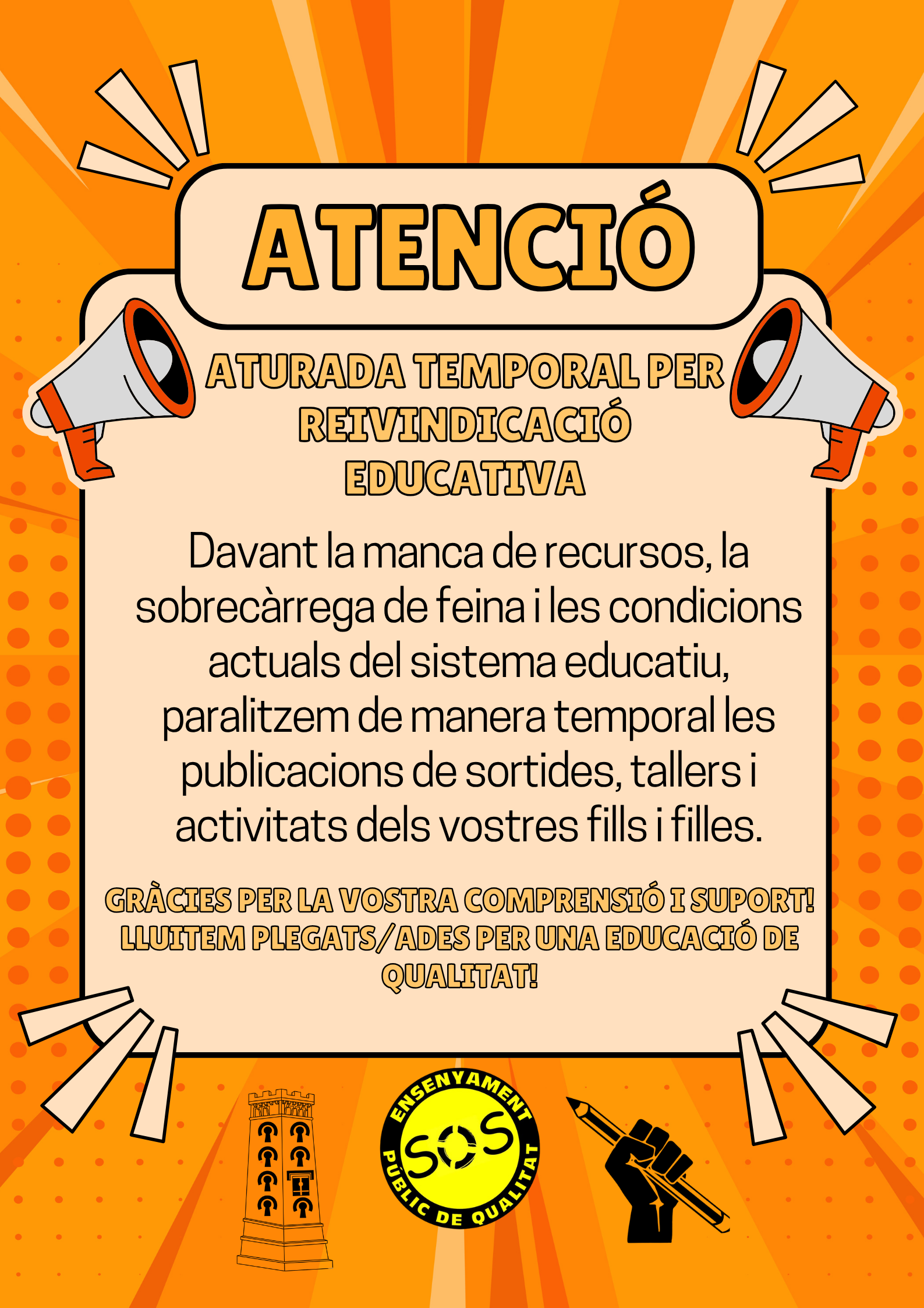 L’Equip Educatiu de l’Escola Torre de la Miranda ha decidit, com a mostra de protesta davant la manca de recursos, la sobrecàrrega de feina i les condicions actuals del sistema educatiu públic, tancar temporalment el canal d’Instagram de l’escola i paralitzar les publicacions a la web de sortides, tallers i activitats dels vostres fills i […]