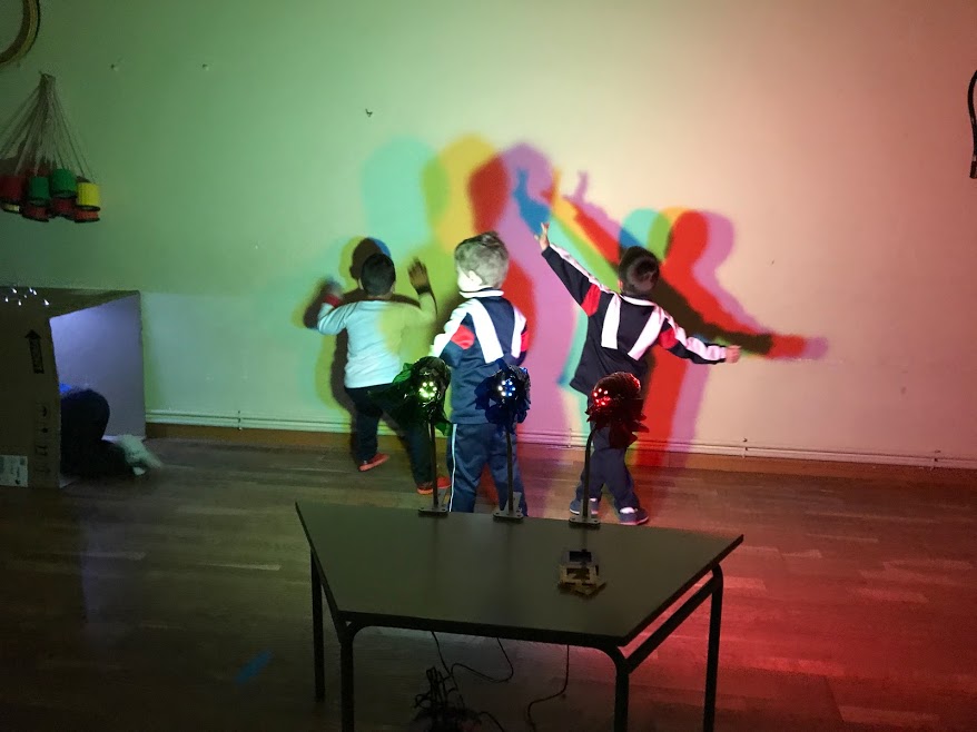 Aquesta última sessió de psico ha estat del tot especial i màgica. Amb un espai preparat i ple d’estímuls, tant els nostres sentits com la nostra imaginació s’han posat en marxa. Sabeu amb què hem jugat? Amb la llum! Però no amb la llum que tenim al sostre per quan es fa fosc, sinó amb