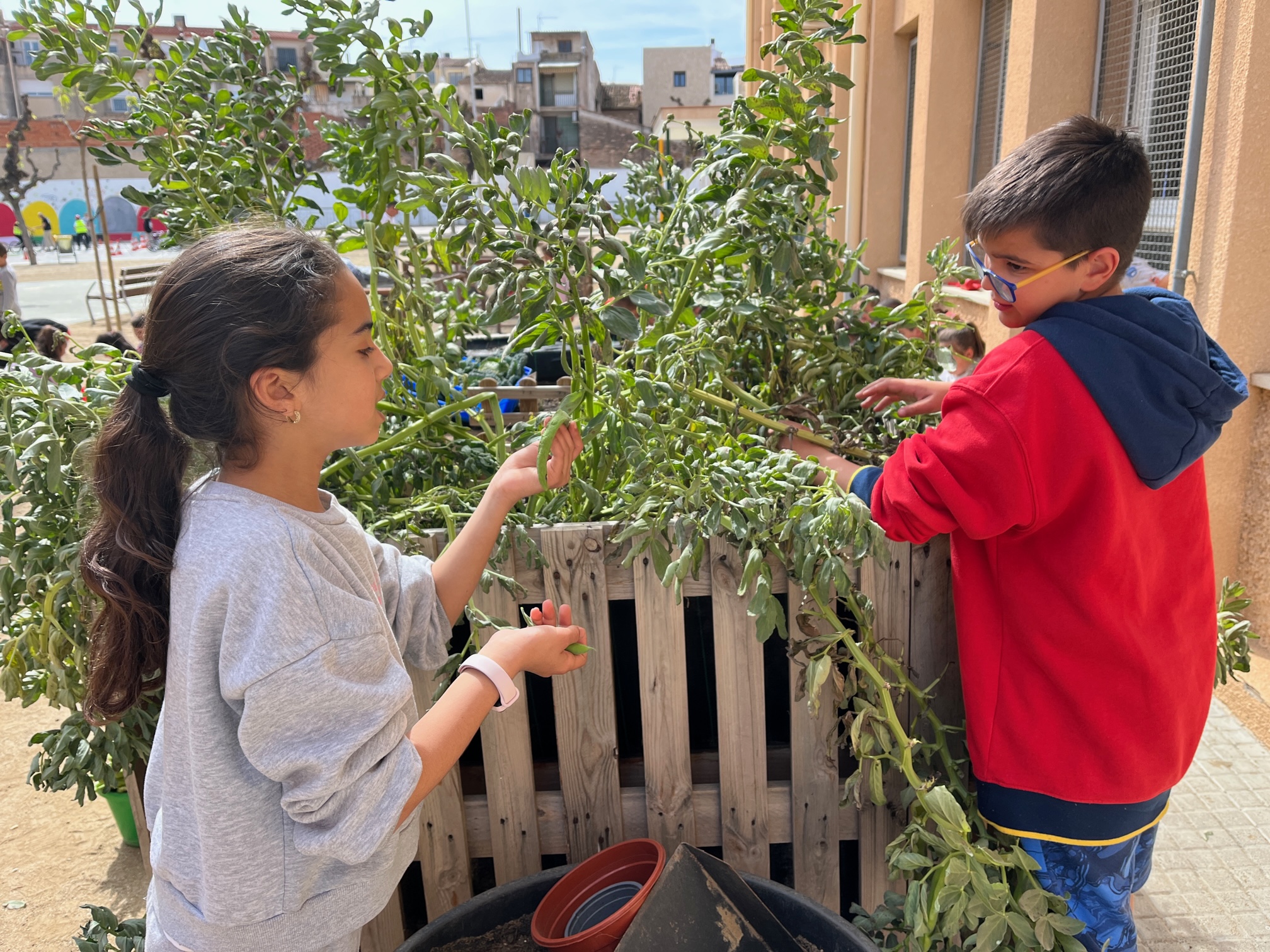 També hem preparat la terra i hem plantat vegetals de primavera: api, mongeta verda, tomaqueres. carbassons, pebrots… Esperarem impacients a que creixin!