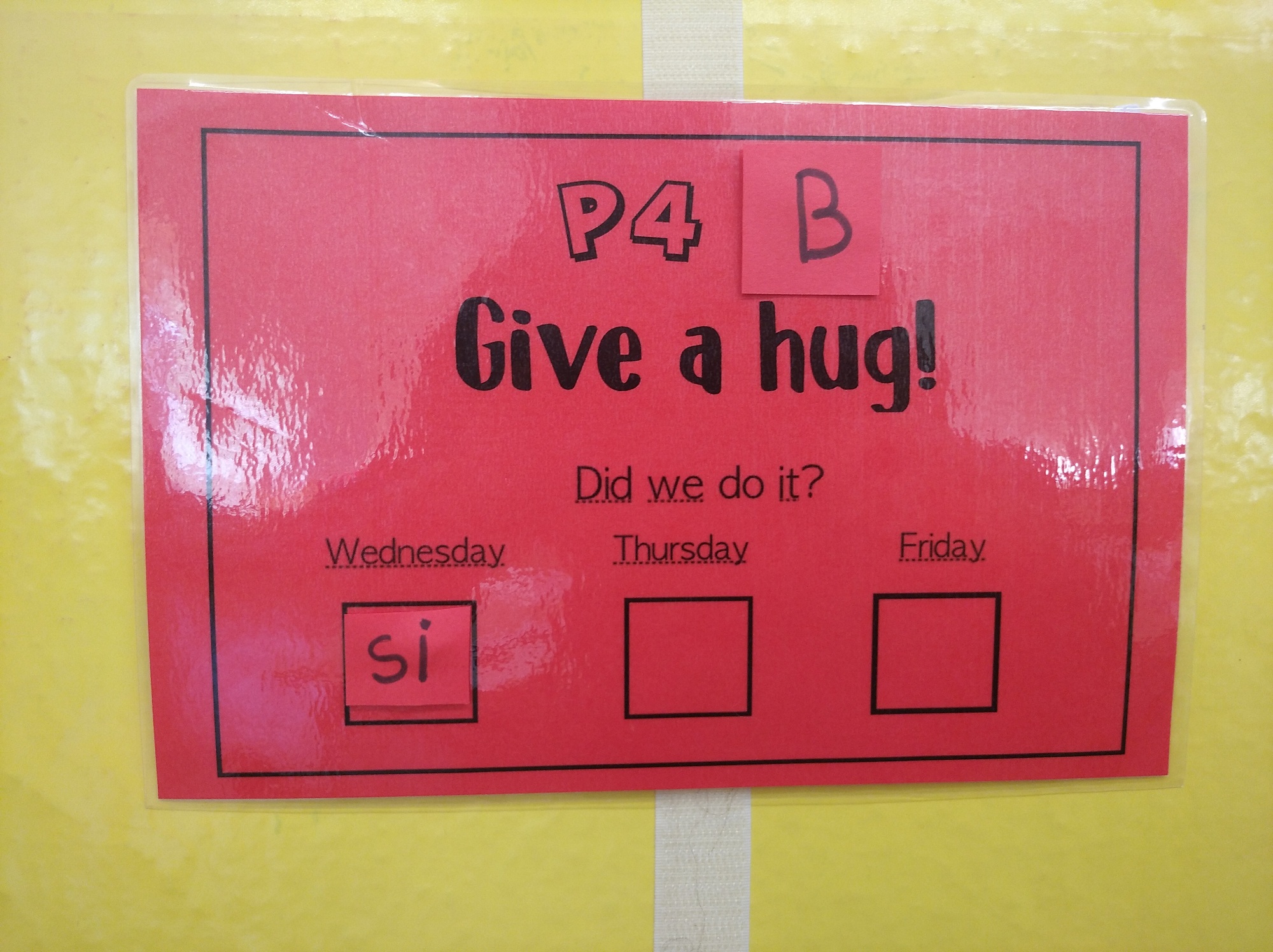 Today began three challenge days. Our challenge is give hugs for three days and today we have got it, see you!